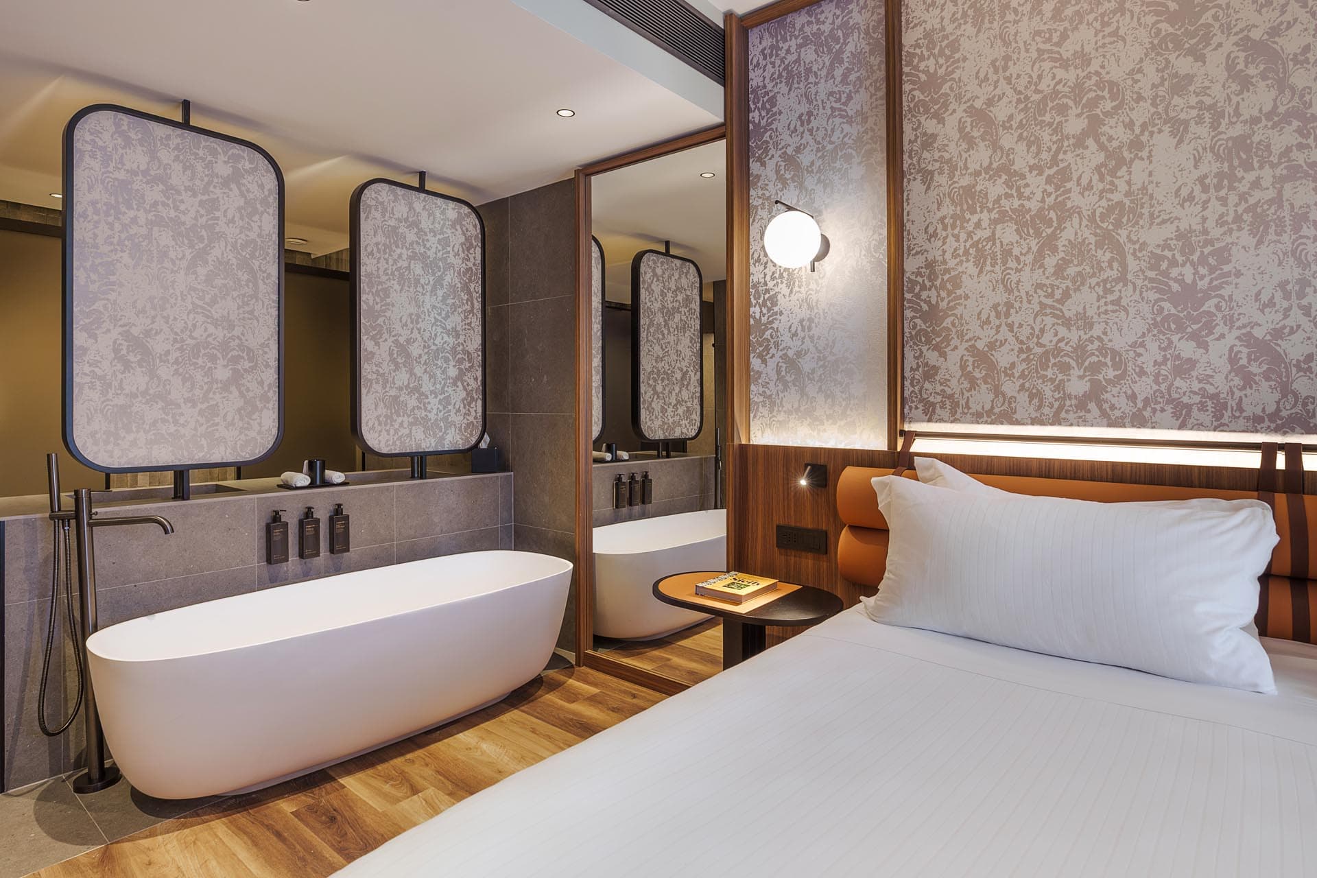 Free Wi-Fi / 55-inch HD TV / Air conditioning / Slippers / Bidet / Blackout curtains / Toiletries / Coffee-making facilities / Desk-height power outlets / Hairdryer / Free high-speed Internet access / In-room espresso machine / Iron and ironing board / Minibar / Telephone with answerphone / Emergency call button on the phone / Safe