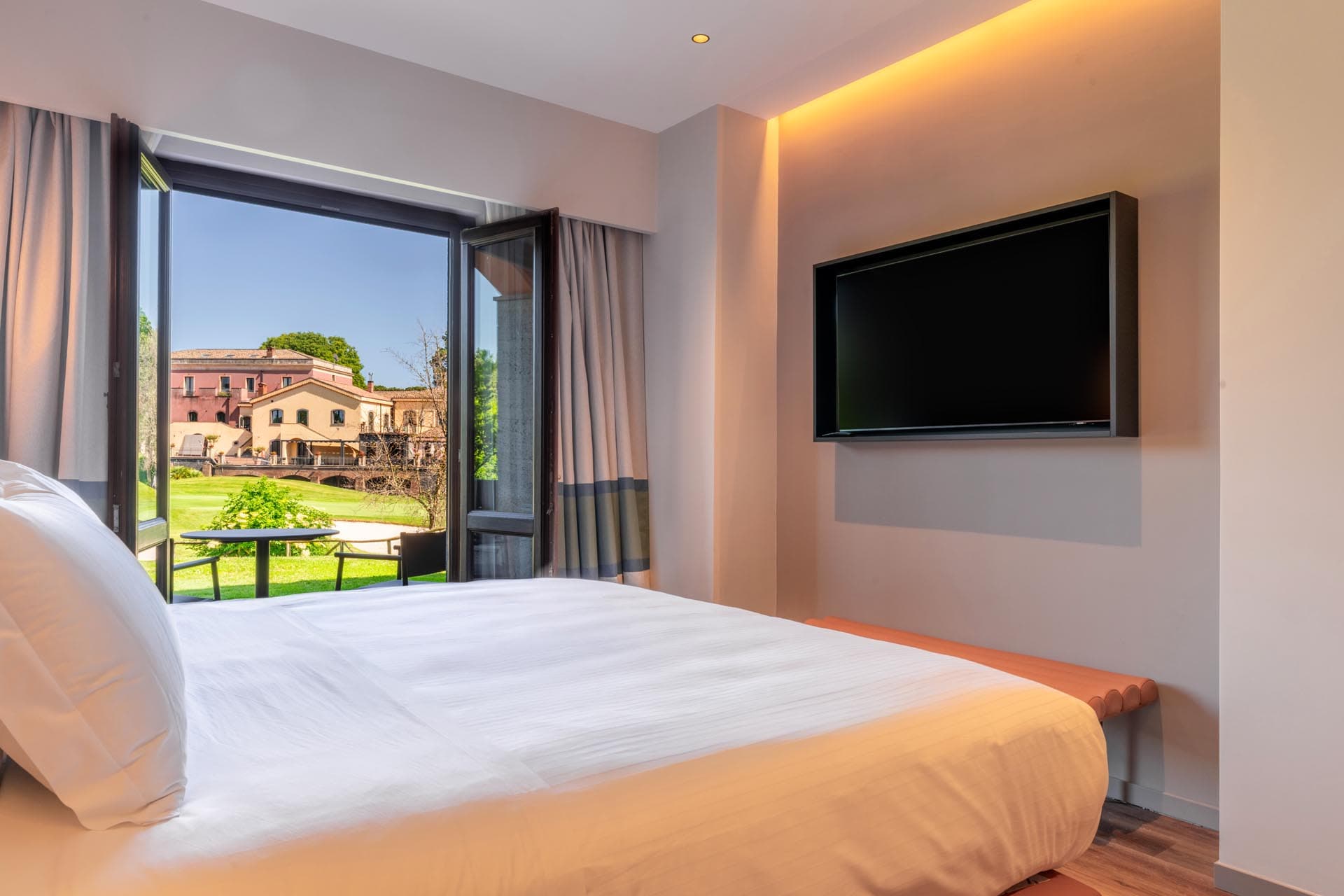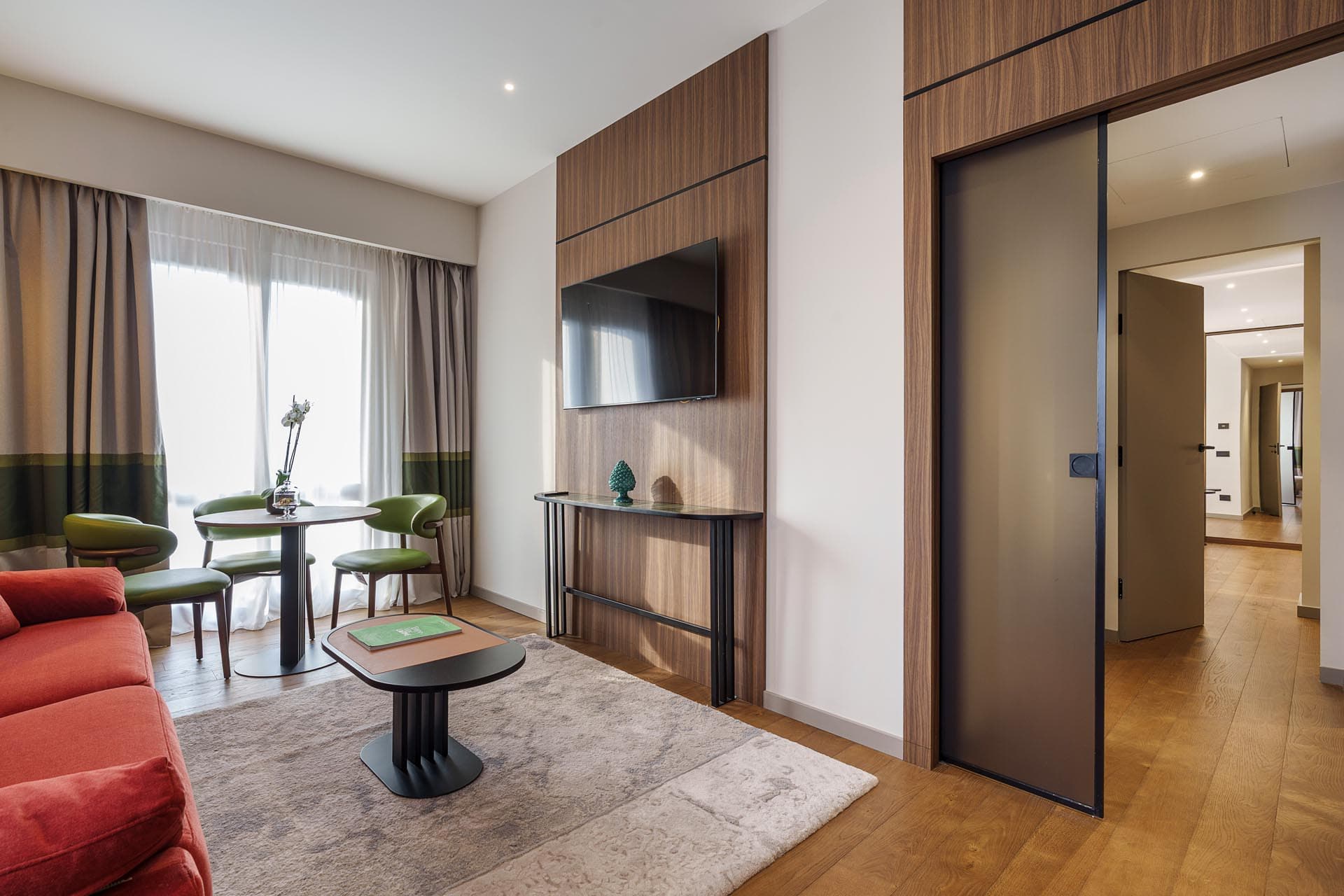 Our Etna Suite offers double the space for extra relaxation, with two spacious bedrooms and a patio with a private garden and views of Mount Etna. The suite has a separate living room and two bedrooms, both with a king-size bed. It also offers a large living room with a 55-inch HD TV and two bathrooms. Catch up on emails at your desk and stay connected with our complimentary Wi-Fi.