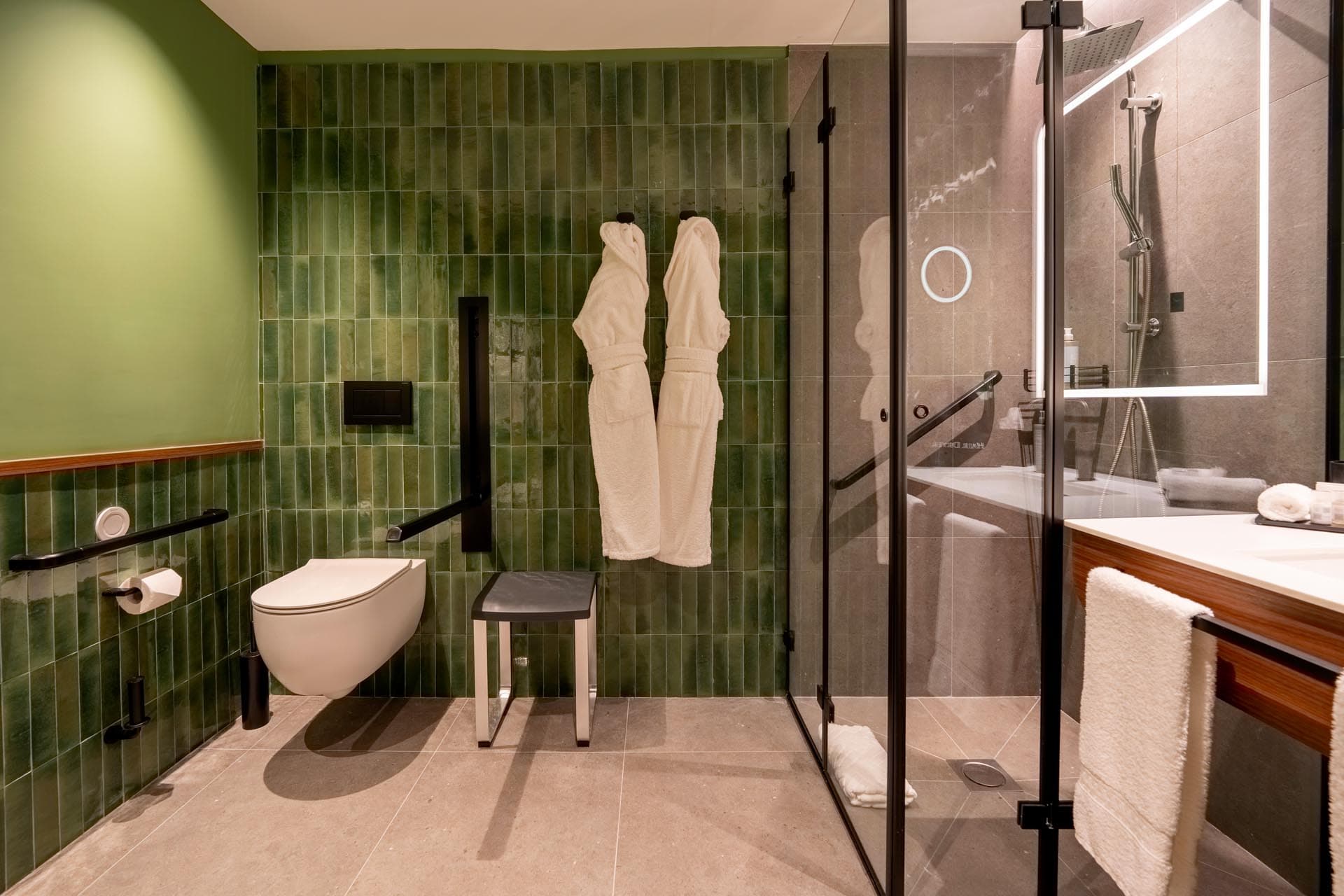 This room is equipped for guests with disabilities and has an accessible shower and a king-size bed. Images shown may not reflect the specific accessible room type or features.