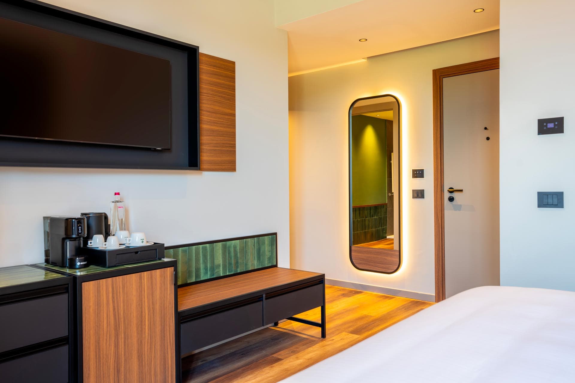 Free Wi-Fi / 42-inch HD TV / Air conditioning / Slippers / Bidet / Blackout curtains / Toiletries / Coffee and tea-making facilities / Desk-level power outlets / Hairdryer / Free high-speed Internet access / Espresso machine / Iron and ironing board / Minibar / Telephone with answerphone / Emergency call button on the phone / Safe