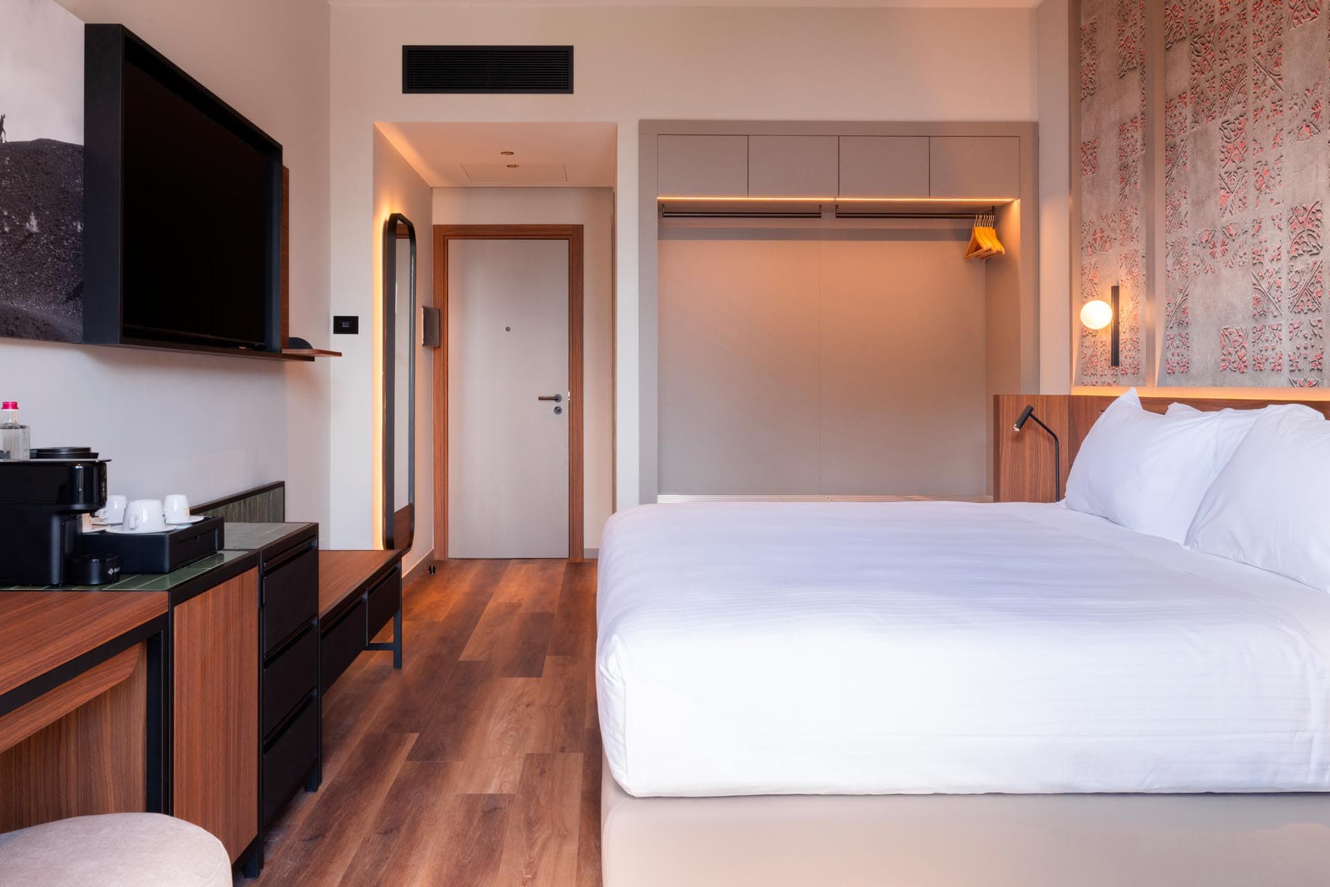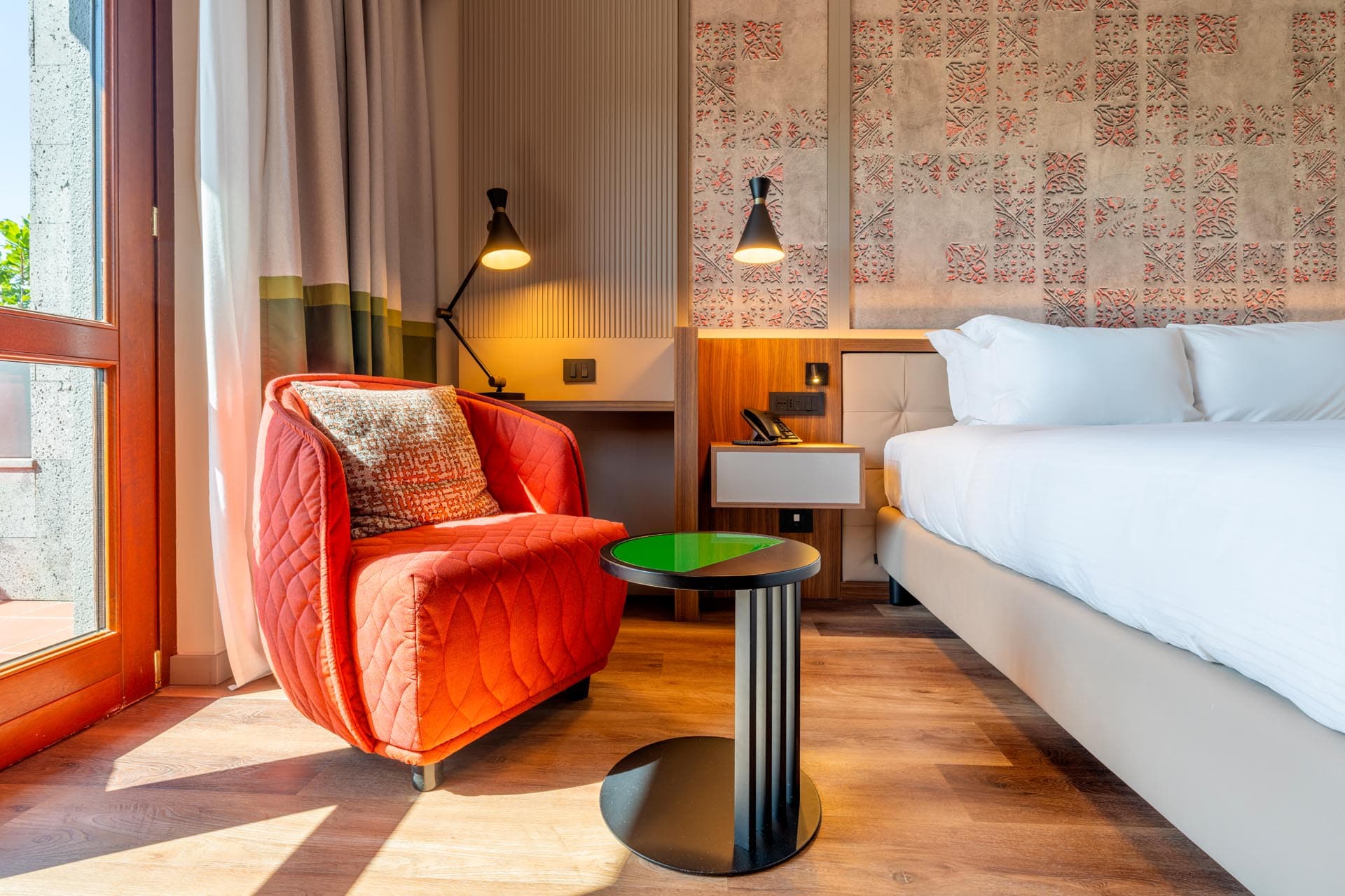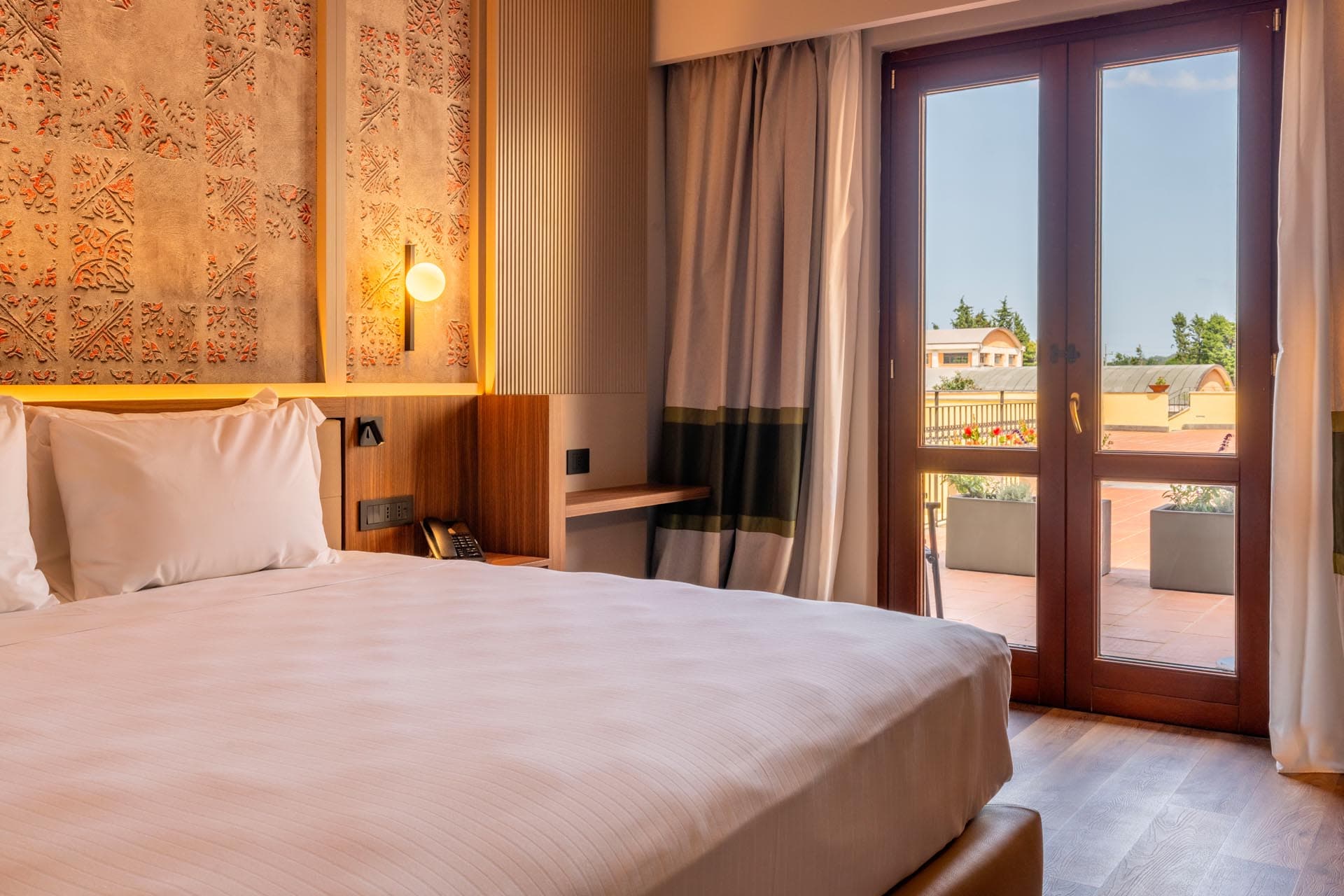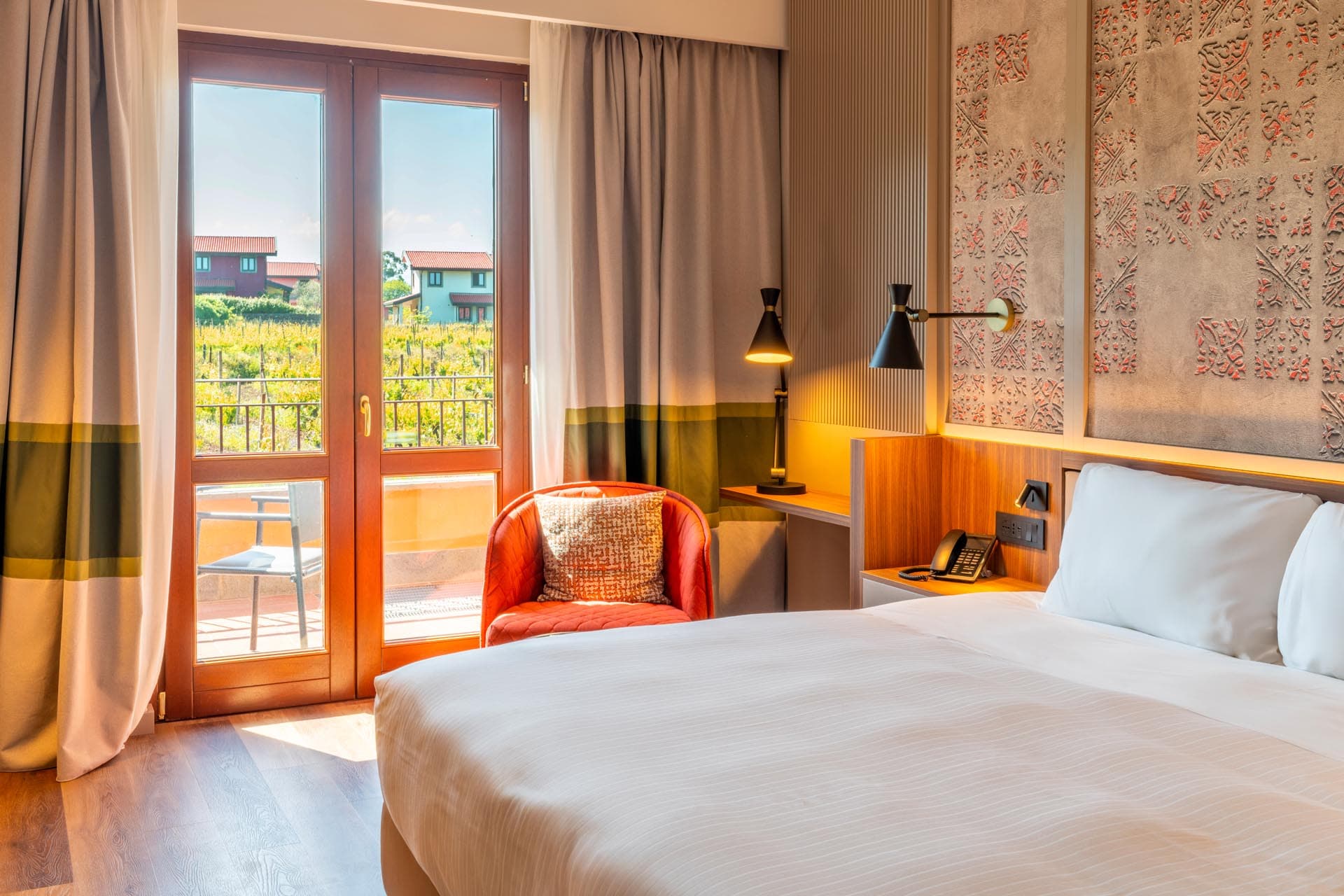 Overlooking a landscape of breathtaking beauty, surrounded by the greenery of the golf course and framed by the volcanic peaks, the 100 rooms and suites of the Picciolo Etna Golf Resort & Spa Curio Collection by Hilton embody a natural sense of hospitality. Comfortable, spacious and welcoming with a modern and refined feel, they perfectly embody the resort's minimalist-chic style. For your utmost comfort, each room offers a full range of amenities including Wi-Fi, a flat-screen LED TV, air conditioning, spacious bathrooms and, in select room types, a separate living area with a mezzanine sleeping area and a terrace with spectacular views.