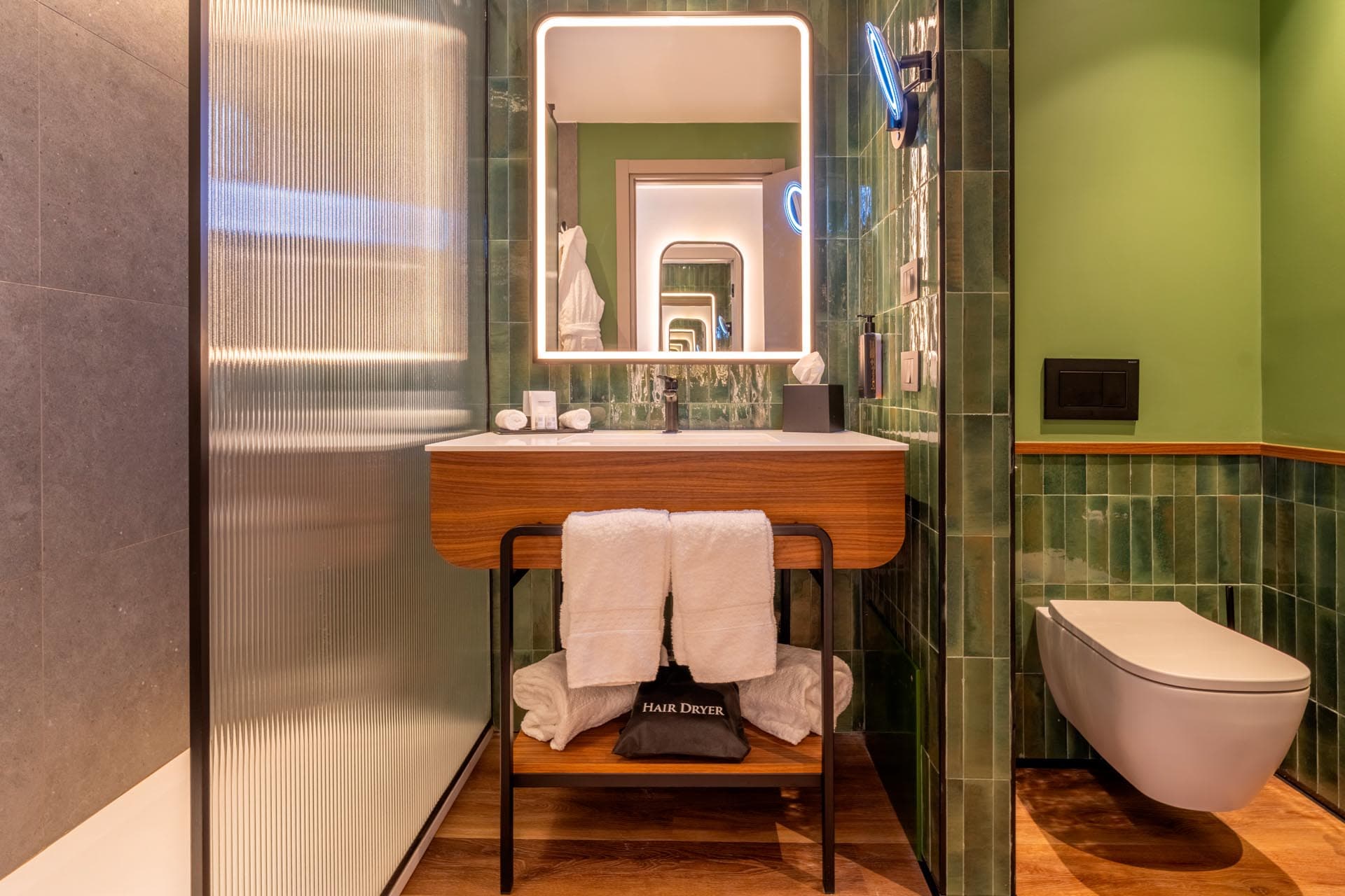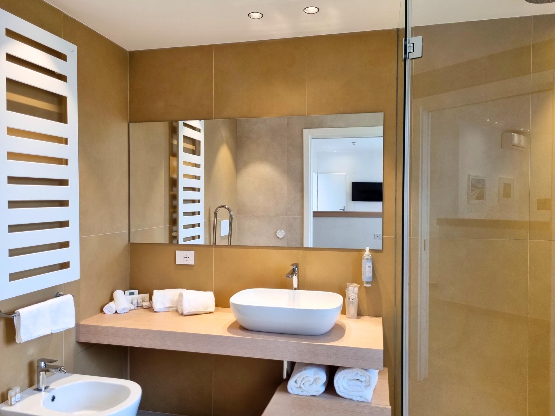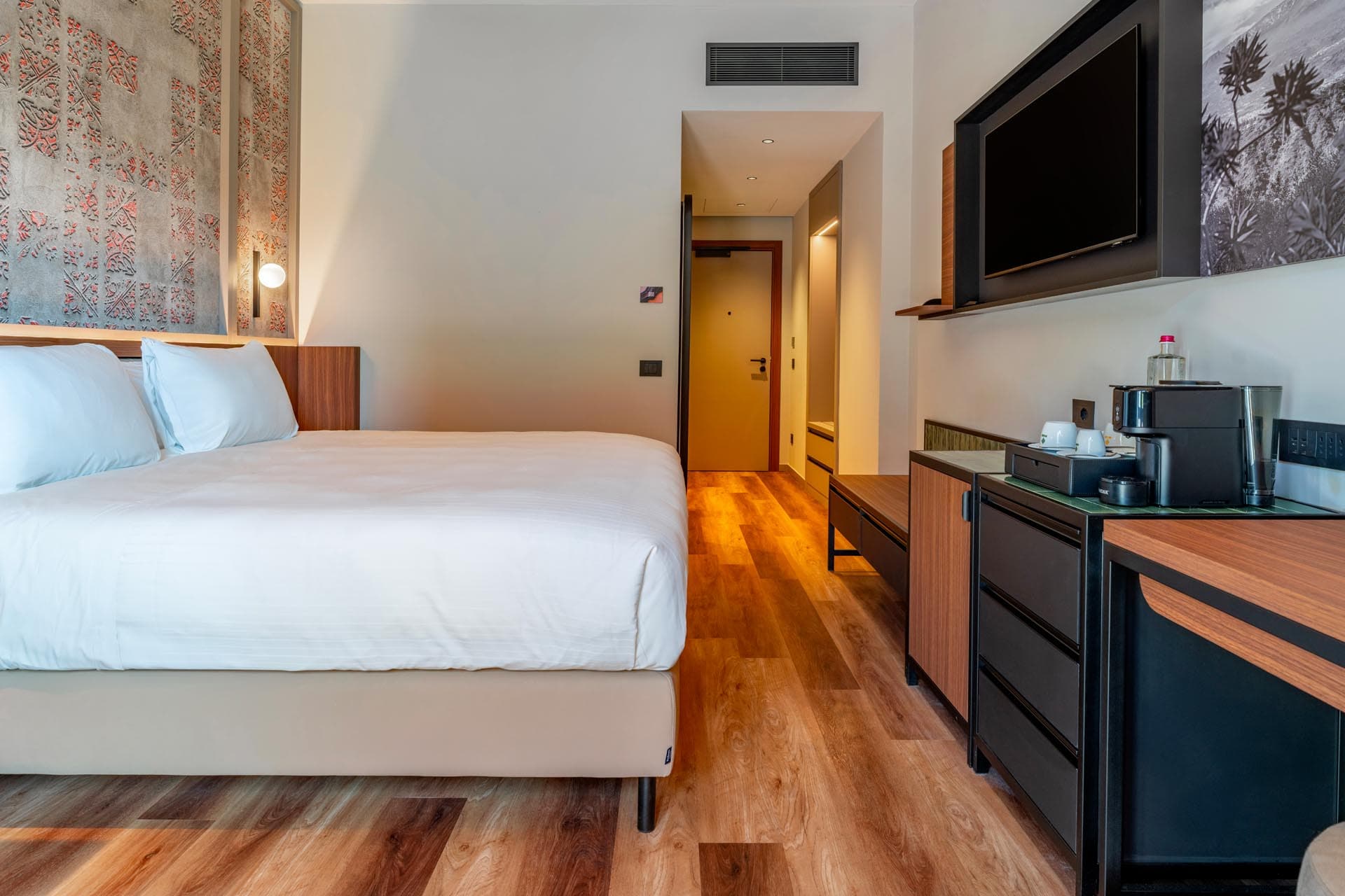 Free Wi-Fi / 42-inch HD TV / Air conditioning / Slippers / Bidet / Blackout curtains / Toiletries / Coffee and tea-making facilities / Desk-level power outlets / Hairdryer / Complimentary high-speed Internet access / In-room espresso machine / Iron and ironing board / Minibar / Telephone with answerphone / Emergency call button on the phone / Safe large enough to fit a laptop