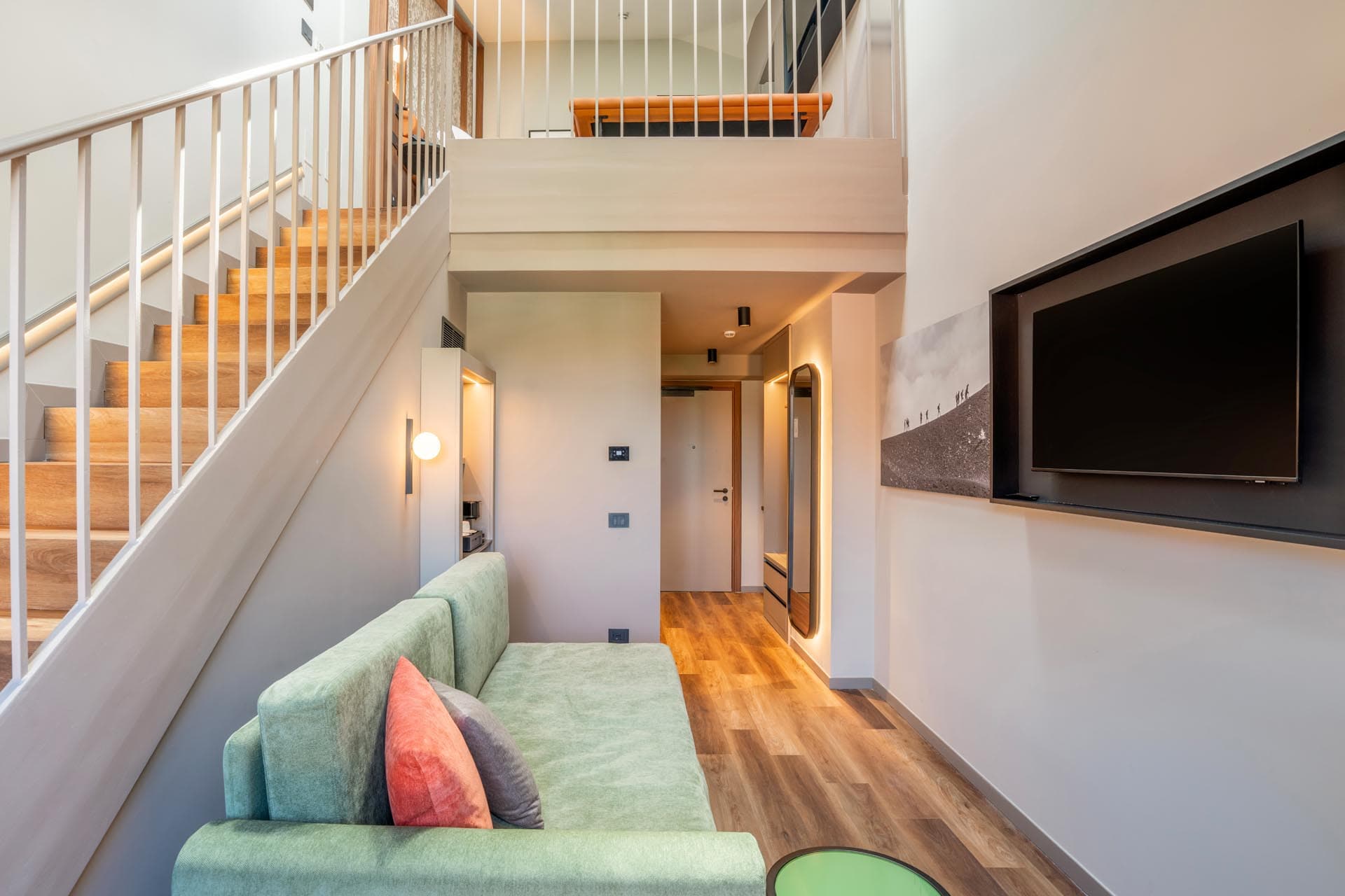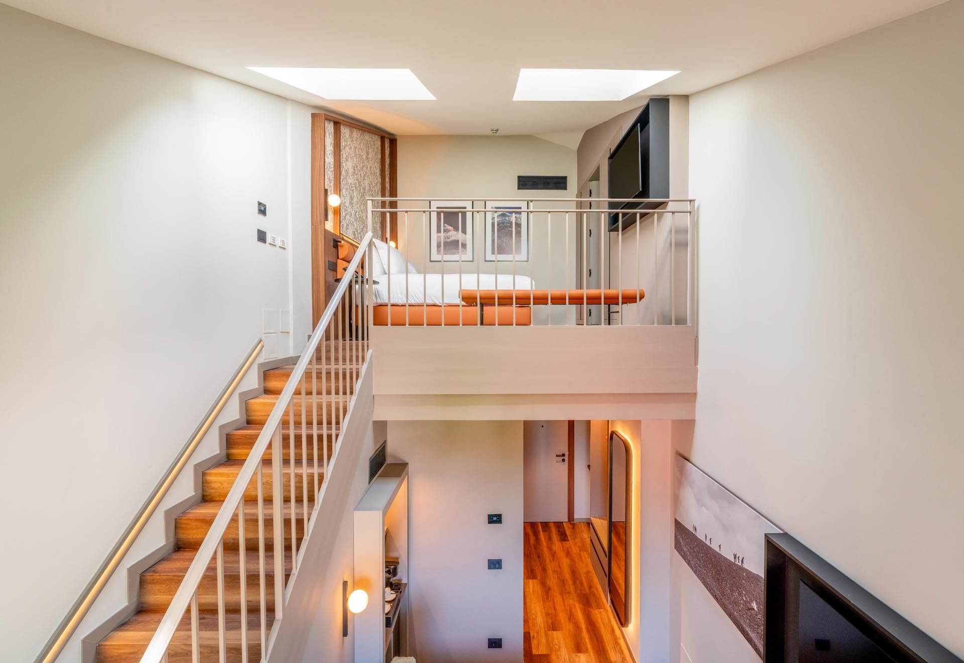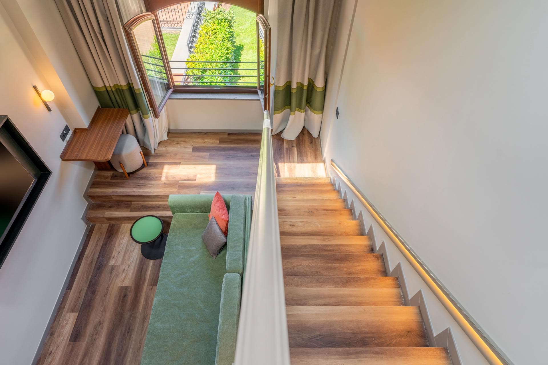 Enjoy stunning views while staying in this elegantly furnished Duplex room. This room has two levels: a living area with a sofa bed on the lower level and a bedroom with a king-size bed upstairs. Wake up with a cup of tea or coffee and cosy up to watch a movie on the HD TV. This room has a walk-in shower with a rainfall showerhead in the bathroom.